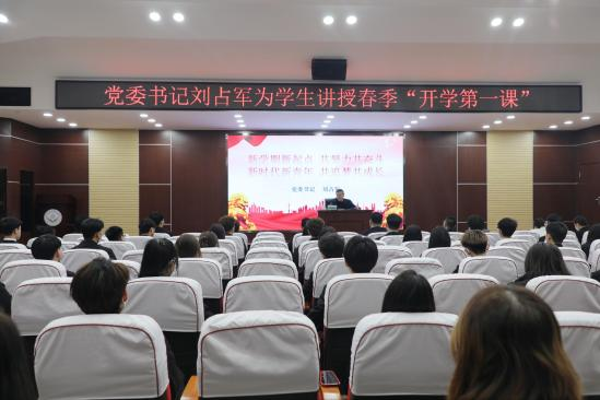 近日,辽宁生态工程职业学院党委书记刘占军为学生讲授2023年春季学期“开学第一课”。学院宣传统战部、团委等部门负责人,辅导员和学生参加。