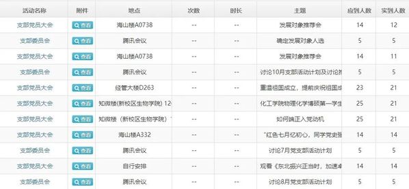 组织生活管理:组织生活管理服务量化,明确“月——季——年”“三会一课”主题党日等组织生活达标标准,每月发放重点任务清单,实现基层党支部组织生活“会议通知——参会统计——会议记录”等功能,做到党支部组织生活提醒、全过程智能电子记录存档、达标情况预警、动态分类统计等,为基层党务工作者提供短信通知、会议数据自动提取记录、参会人员统计等智能服务,省事省时省力,留出更多的时间和精力投入到教学科研、工作学习中。