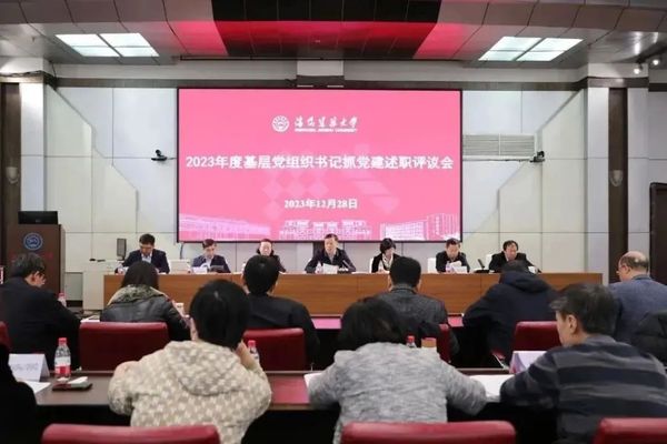 2023年12月28日,沈阳建筑大学召开2023年度基层党组织书记抓党建工作述职评议会。学校领导董玉宽、严文复、李宇鹏、冯国会、夏柏树,党委常委曹传明、潘瑞出席会议。党委常委、副校长冯国会主持会议。