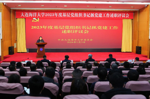 1月3日,大连海洋大学召开2023年度基层党组织书记抓党建工作述职评议会。姚杰、宋林生等学校领导班子成员,党委常委出席会议。学校党委委员、纪委委员,各基层党委(党总支)书记、党委(党总支)委员,副处级以上干部,各党支部书记,组织员参加会议。