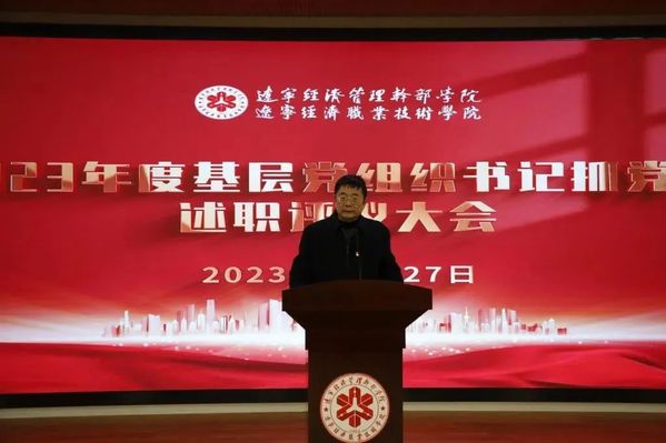 近日,辽宁经济职业技术学院召开2023年度基层党组织书记抓党建述职评议考核会议。学院领导,党政办公室、党委组织部、党委宣传统战部、综合监察室等部门负责人,各党总支(直属党支部)书记和支委代表参加会议。会上,13名基层党组织书记结合工作实际进行述职,全面总结成绩、认真查找不足、明确2024年重点工作。学院党委书记王大超进行点评并作总结讲话。