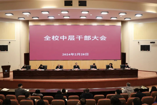 2月28日,辽宁大学召开新学期全校中层干部大会。学校党委书记潘一山出席会议并讲话,党委副书记、校长余淼杰作新学期工作部署。全校实职副处级以上领导干部参加会议。会议由学校党委副书记孙士国主持。