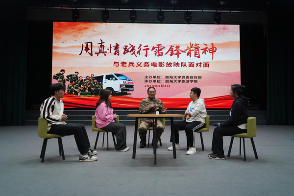 3月4日,渤海大学开展青年学生与老兵义务电影放映队面对面活动,邀请全国学习雷锋、志愿服务先进集体——锦州老兵义务电影放映队走进校园,为渤海大学学子讲授一堂别开生面的“开学第一课”。