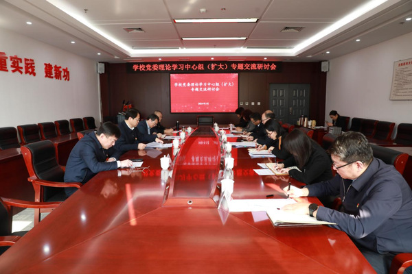 第二天下午,学校党委理论学习中心组(扩大)专题交流研讨会召开。高明宇主持会议并讲话。学校领导班子成员和相关部门负责同志参加会议。