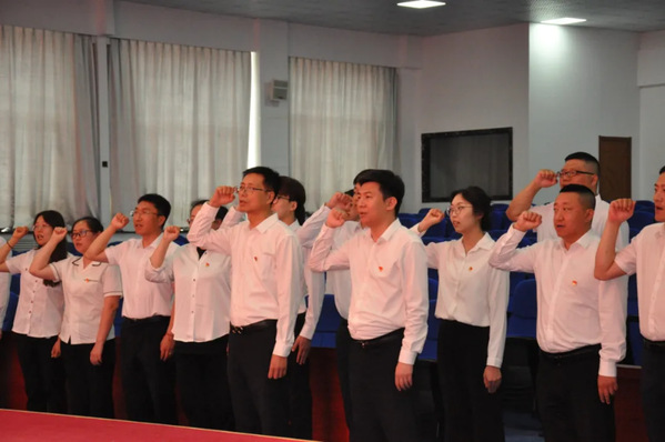 同时,学院还组织了新老党员重温入党誓词的活动。在庄严的党旗下,新老党员们共同回顾入党时的初心和誓言,表达了对党的忠诚和热爱。他们右手握拳,高举过肩,齐声诵读入党誓词,铿锵有力的声音回荡在会场,彰显着共产党员的坚定信念和崇高追求。