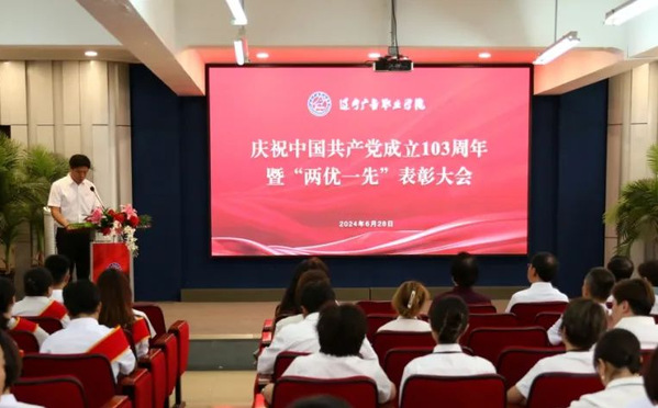 6月28日,辽宁广告职业学院隆重召开庆祝中国共产党成立103周年暨“两优一先”表彰大会。学院党委书记苏强出席会议并讲话,学院主要领导高凯征、刘凤娟、杨克出席会议,党政领导班子成员、中层干部、全体党员和受表彰的个人和集体代表参加会议。学院党委副书记、院长刘凤娟宣读表彰决定。