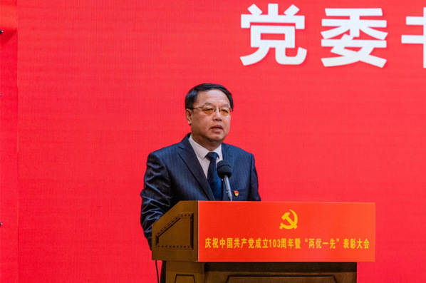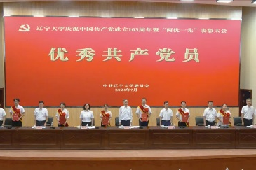 7月1日,辽宁大学举行庆祝中国共产党成立103周年暨“两优一先”表彰大会。学校党委书记潘一山出席会议并讲话,党委副书记、校长余淼杰,副校长李宇鹏,纪委书记张洪新,副校长史保东、霍春辉、仇焕广出席会议。大会由学校党委副书记、校长余淼杰主持。