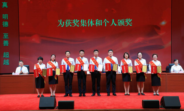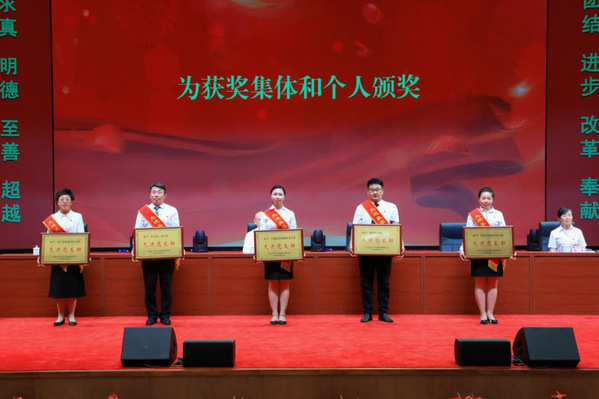 在热烈的掌声中,学院领导为受到表彰的集体和个人颁奖。