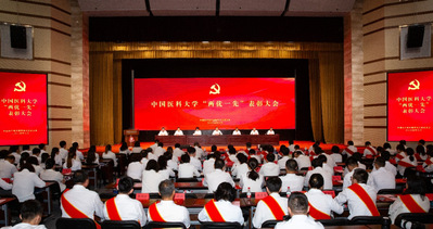 在庄严的国歌声中,锦州医科大学庆祝建党103周年暨“两优一先”表彰大会拉开帷幕。会上,闻德亮带领新发展党员代表进行入党宣誓,全体老党员重温入党誓词。