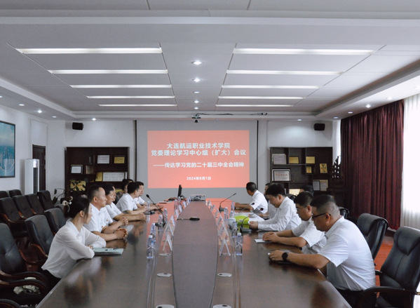 8月1日,大连航运职业技术学院党委书记崔学昶主持召开党委理论学习中心组(扩大)会议,专题学习党的二十届三中全会精神,部署学院贯彻落实工作。学院党委副书记、院长吴鹏传达学习教育部党组、全省及省教育厅党组学习贯彻党的二十届三中全会精神大会精神。