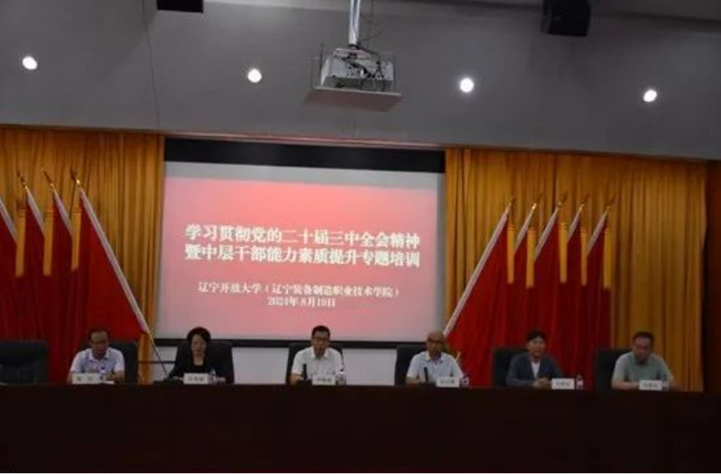 8月19日—20日,辽宁开放大学(辽宁装备制造职业技术学院)举办学习贯彻党的二十届三中全会精神暨中层干部能力素质提升专题培训,全体中层干部和党外代表人士共计100余人参加了培训。学校领导班子成员出席开班仪式,学校党委书记伊焕斌围绕贯彻落实党的二十届三中全会精神进行专题辅导,并作开班动员讲话。党委副书记张秀丽主持。