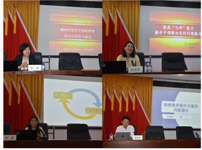 此次培训课程设置丰富、针对性强,邀请中共辽宁省委党校的李倩、赵俊男、李彬三位教授和江苏金鸽网络科技有限公司高级舆情分析师袁堂俊老师,就“新时代领导干部的使命、责任与领导力建设”“提高‘七种能力’,提升干部队伍解决实际问题能力”“公文写作规范与写作逻辑”和“舆情素养提升与宣传风险提示”等专题进行培训,既有理论的高度,又包含实践技巧内容,带来一场“干货满满”“营养充沛”的知识盛宴。