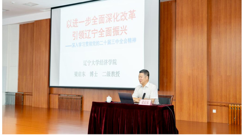 梁启东以《进一步全面深化改革  引领辽宁全面振兴》为题,深刻阐述了进一步全面深化改革的重要意义、总体要求、战略部署,以及引领辽宁全面振兴、奋力谱写中国式现代化辽宁实践等内容。培训报告战略高、理论深、视野宽、语言实、观点新,具有很强的政治性、思想性和实践性,对学校党员领导干部深入学习贯彻党的二十届三中全会精神具有重要的指导意义。
