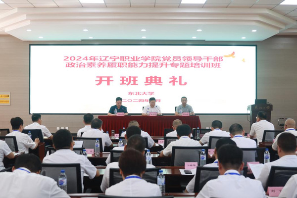 开班仪式上,东北大学继续教育学院负责同志致欢迎辞。辽宁职业学院党委书记、院长刘奕彤作动员讲话并指出,2024年干部教育培训工作的一项重要任务,是贯彻落实习近平总书记关于干部队伍建设重要论述的具体行动,是强化干部担当作为意识,提升干事创业能力,加强高素质干部队伍建设,全面提升干部政治素质与履职能力,推动干部教育培训工作高质量发展的重要举措。他就此次培训讲了三点意见:一是提高认识,增强学习培训的责任感和使命感。学院今年把培训地点选在东北大学,就是让大家在繁忙的工作之余,静下心来充充电、加加油,同时也让大家不忘初心、荡涤灵魂、锤炼党性和创新本领,切实确保本次培训取得良好成效。二是勤思善学,学以致用,全面提高自身综合素质与能力。学院广大干部要在培训中把学习内容与学习党的二十届三中全会精神贯通起来、与党纪学习教育结合起来、与现代职业教育体系建设改革工作联系起来,带着问题学、联系实际学、深入思考学,及时填补知识空白、补齐素质短板,切实提升学习成效。三是严明纪律,严谨学风,圆满完成各项培训任务。学院广大干部要把当前的学习与学院第三次党代会确定的高质量发展各项任务结合起来,撰写好学习心得,真正把学习成果转化为谋划工作的思路、解决问题的举措、推动发展的动力。