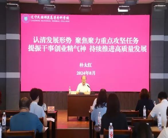学校党委书记朴太红作《认清发展形势聚焦聚力重点攻坚任务提振干事创业精气神持续推进高质量发展》专题报告,简要总结了学校在2023年取得的成绩,分析了学校当前面临的发展形势,强调学校全体中层干部面对新的机遇、新的挑战,要迎难而上、勇于担当、善于作为、奋发向前,集中力量干大事。