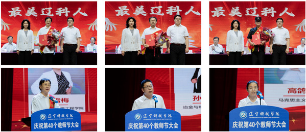 大会对荣获“教学名师”“优秀教师”“先进工作者”“最美辽科人”等荣誉的教师进行表彰,学院领导班子为获奖者们颁奖并表示热烈的祝贺。3名获奖教师代表先后作了发言,讲述他们怀揣“学为人师,行为世范”的信念,在工作岗位上潜心育人、勤勉躬耕的感人故事。