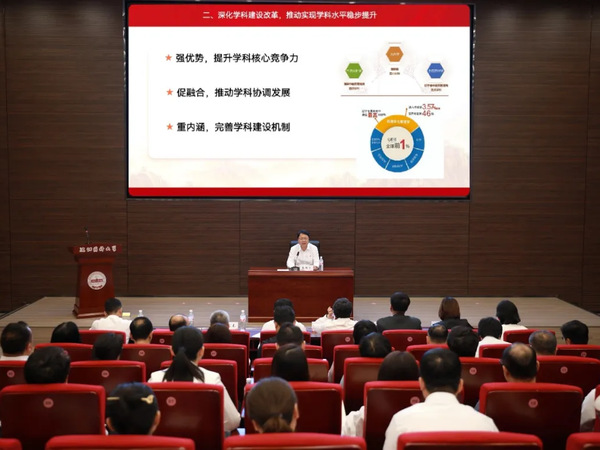 高明宇在宣讲时强调,要将学习贯彻党的二十届三中全会精神同落实好习近平总书记在首届全国教育大会上的重要讲话精神紧密结合起来,同学习贯彻习近平总书记关于教育的重要论述一体联动起来,同贯彻落实全省教师表彰大会深度融合起来,扎实推动学校各项工作高质量发展。一是深化高素质药学人才培养改革,推动实现人才自主培养能力全面提升。要坚持不懈用习近平新时代中国特色社会主义思想铸魂育人,全力以赴做好学科专业优化调整,多措并举提升育人质量,强有力推进育人水平再上新台阶。二是深化学科建设改革,推动实现学科水平稳步提升。要强优势、提升学科核心竞争力,促融合、推动学科协调发展,重内涵、完善学科建设机制,把学科建设的优势转化为推动学校高质量发展的胜势。三是深化教师队伍建设改革,推动实现教师队伍水平不断提升。要弘扬教育家精神、严格师德师风第一标准,落实惠师举措、保障教师待遇,建立全链条人才引进体系、优化教师队伍结构,多管齐下培养汇聚一批专业领域高端人才和创新团队。四是深化科研体制机制改革,推动实现高水平药学科技自立自强。要强支撑、构筑大平台,增后劲、承担大项目,广交流、撬动大合作,重服务、推动大转化,持续产出高水平科研成果。五是深化国际化办学改革,推动实现高水平教育开放。要加大国外引智力度,推动国际化办学进程,共育国际化药学人才,持续提升服务“健康中国”的能力。他强调,要在优化学科布局中“调结构”,在推进教育科技人才一体改革中“强内涵”,于变局中开新局、从优势中积胜势,坚定不移汇聚高质量发展强势,引领学校在药学教育改革大潮中乘势而上、创新发展。