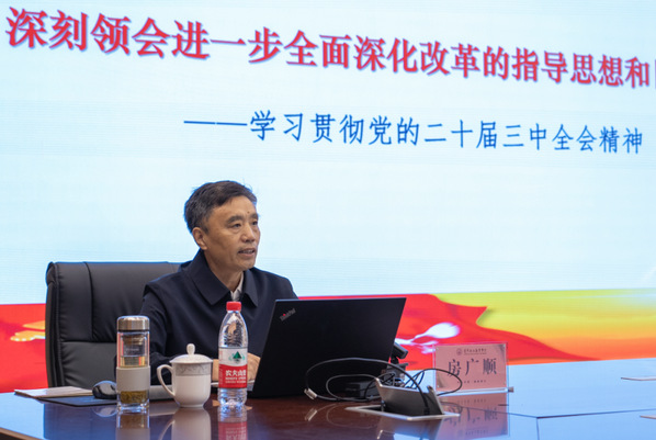 房广顺以“深刻领会进一步全面深化改革的指导思想和目标任务——学习贯彻党的二十届三中全会精神”为题,从党的二十届三中全会主题、意义,进一步全面深化改革的指导思想、总目标和重大原则,进一步全面深化改革的重大举措,全力以赴抓好全会精神的贯彻落实等方面对全会精神进行全面深刻的剖析和解读。强调在贯彻落实全会精神过程中,要深刻认识进一步全面深化改革中需要把握的重大问题,坚持正确方向、坚持问题导向、突出改革重点、把牢价值取向,加强整体谋划;要把学习贯彻全会精神同学习领会习近平总书记关于全面深化改革的一系列新思想新观点新论断结合起来;要加强党对进一步全面深化改革全过程的领导;要以钉钉子精神抓好各项改革任务的落实。