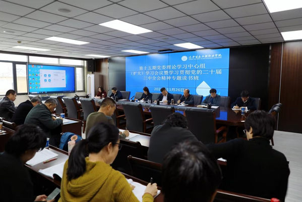 11月26日,辽宁生态工程职业学院召开第十五期党委理论学习中心组(扩大)学习会议暨学习贯彻党的二十届三中全会精神专题读书班,深入学习习近平同志在省部级主要领导干部学习贯彻党的二十届三中全会精神专题研讨班上的重要讲话精神、《教育强国建设规划纲要(2024-2035年)》的通知、全省教育大会精神和全省新时代学校思政课建设推进会精神。会议由学院党委书记刘学主持。