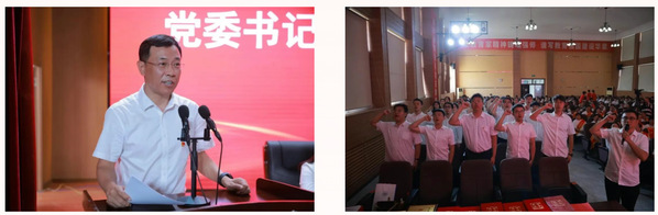在人事处有关负责同志领誓下,新入职教师集体庄严宣誓。从教35周年代表、先进集体和先进个人获奖代表分别作了发言。