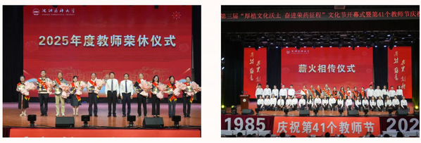 9月10日,沈阳药科大学举办第41个教师节庆祝大会暨2025年度老教师荣休、新教师入职宣誓仪式,隆重表彰教书育人先进典型、致敬荣休教师、迎接新入职教职工,营造尊师重教浓厚氛围。学校党委书记高明宇,党委副书记、牵头负责学校行政工作的副校长齐炼文,学校领导班子成员关雪峰、李可强、宋少江、路金才、卢文春、翟鑫出席大会,与学校合作的企业代表应邀出席大会。全体中层干部、师生代表600余人参加大会。大会由学校党委副书记关雪峰主持。