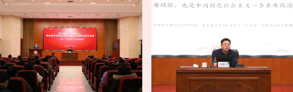 讲座中,沈毅紧紧围绕“夯实基础、全面发力,奋力开创中国式现代化新局面”这一主题,从“‘十五五’时期的历史方位、指导方针和主要目标、战略任务和重大举措,加强党的领导,为实现‘十五五’规划而团结奋斗”四个方面进行了系统、深入、透彻地解读,既有宏观视野又有微观分析,为学院党员干部统一思想、凝聚共识,进而将全会精神转化为推动学院高质量发展的具体行动提供了思路和指引。