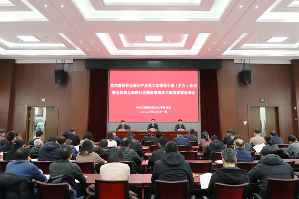3月11日,沈阳航空航天大学召开党的建设和全面从严治党工作领导小组(扩大)会议,深入学习贯彻习近平总书记关于树立和践行正确政绩观学习教育的重要讲话和重要指示精神,传达中央党的建设领导小组会议精神、省委党的建设领导小组会议精神,对全校开展树立和践行正确政绩观学习教育工作进行全面动员部署。